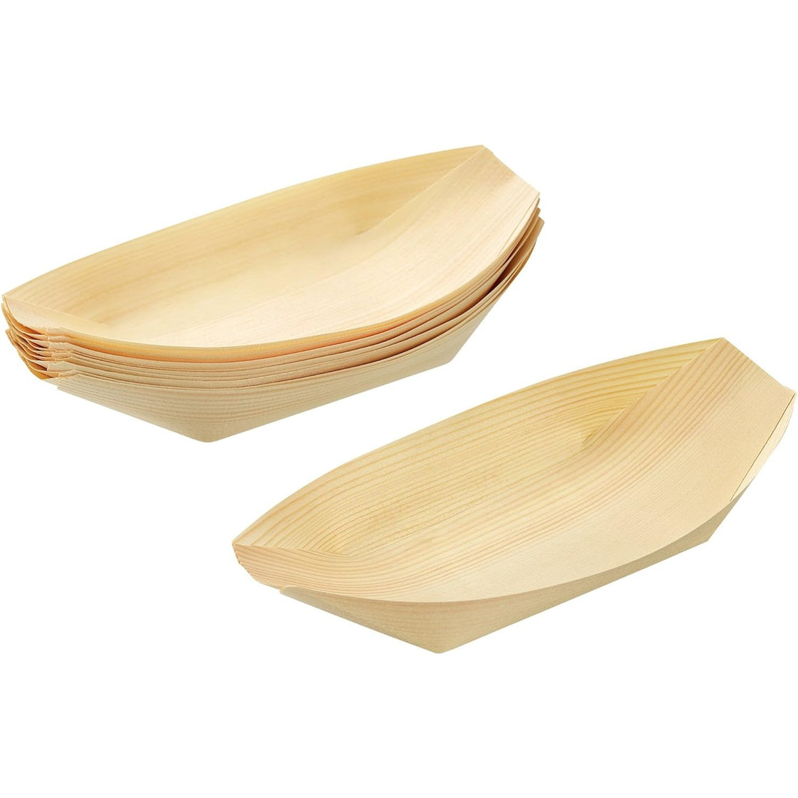 下村 たこ焼きトレー 使い捨て木製サービングボート (10個)