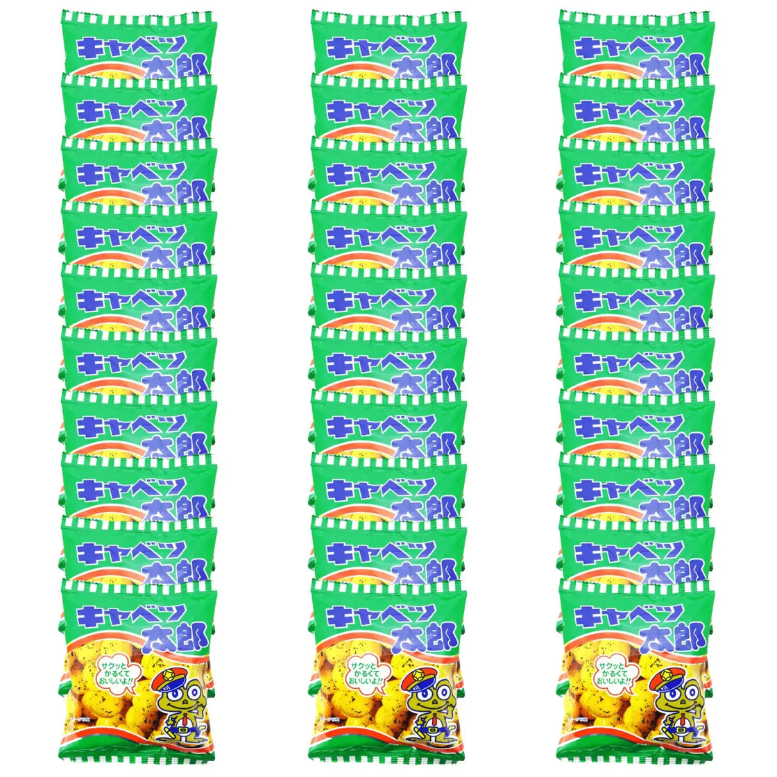 やおきんキャベツ太郎は、青海苔と和風ソースを練り込んだ膨らんだコーンボールでできたロングセラーの日本のスナック菓子です。